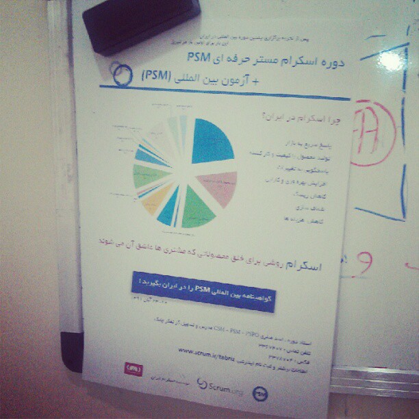 عجب روزهایی بود, اسم تیممون Elephant بود . و این تیم هم ترکیبی از دوست ها بود و این هم تمام شد و و اصلا نمیدونم که چی شد که اون ایده رو ادامه ندادیم . بعد ها هم سعی کردیم دوره اسکرام رو تو تبریز برگزار کنیم که اونم نشد . همه جا نامه نگاری , جلسه خصوصی و توضیحات که هیچ تاثیری نداشت . بعد همون افراد رفتن تو دوره اسکرام اسد که تو تهران برگزار میشد شرکت کردند . 😐